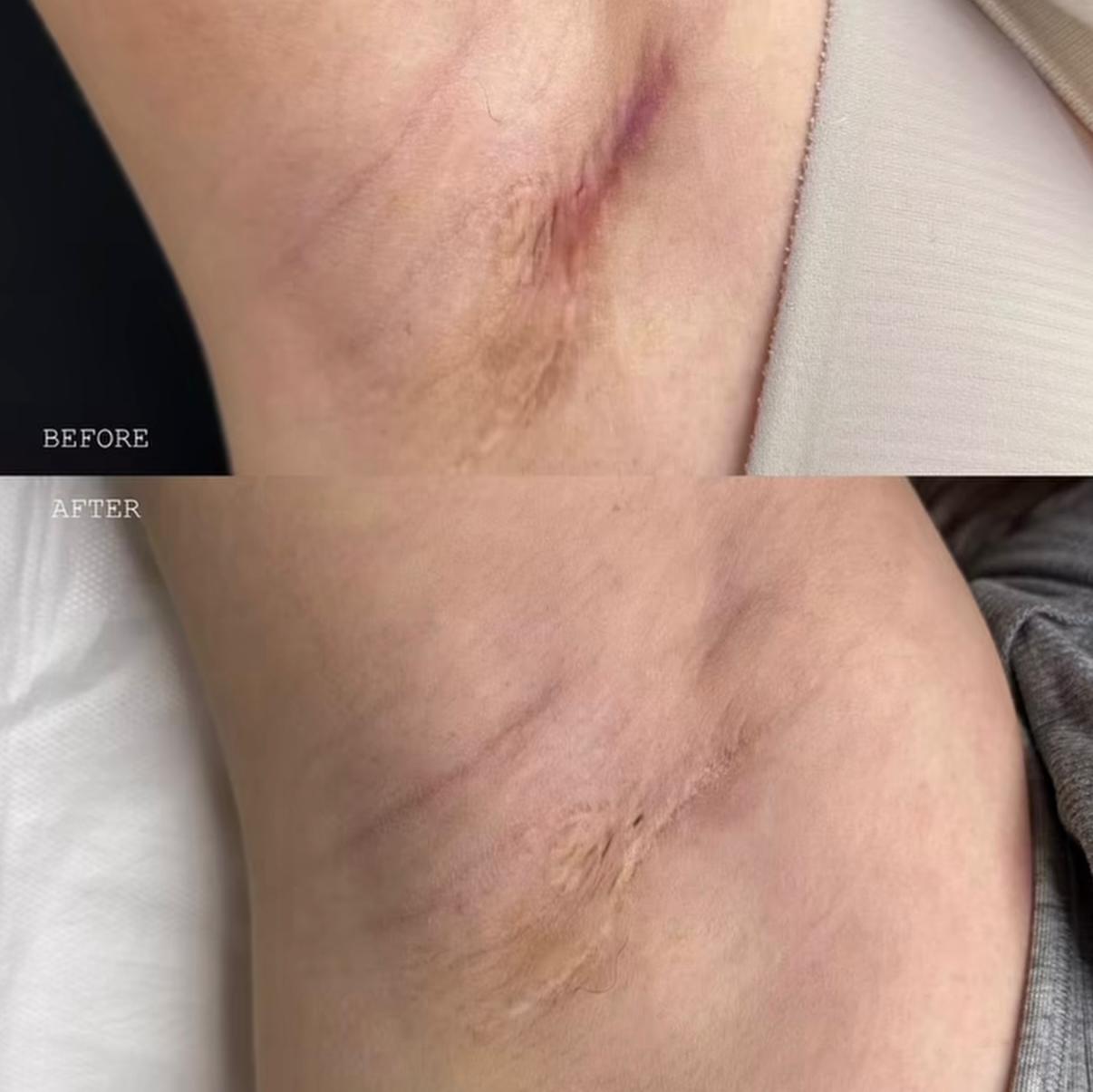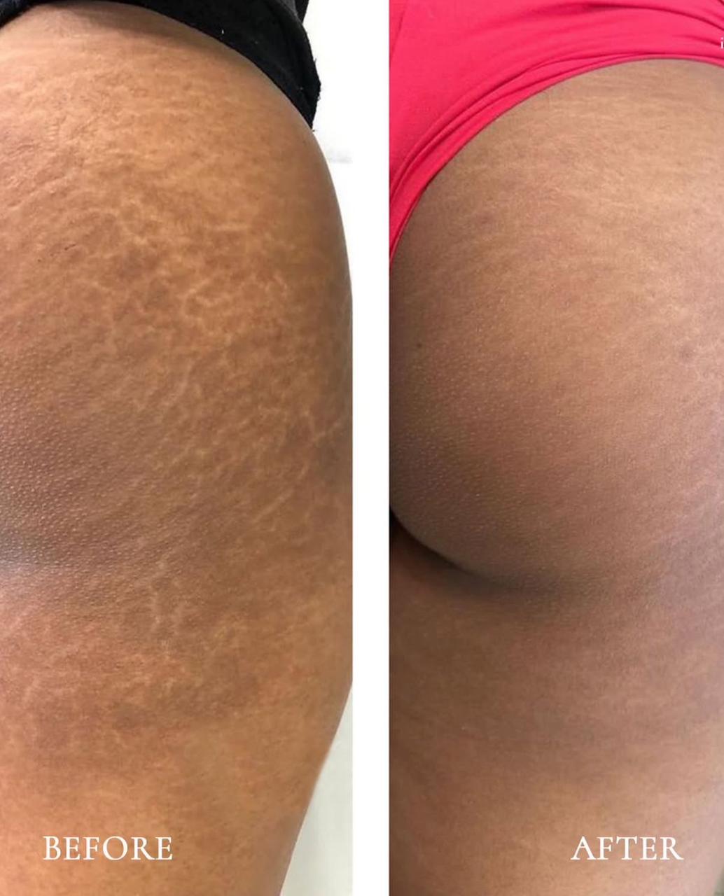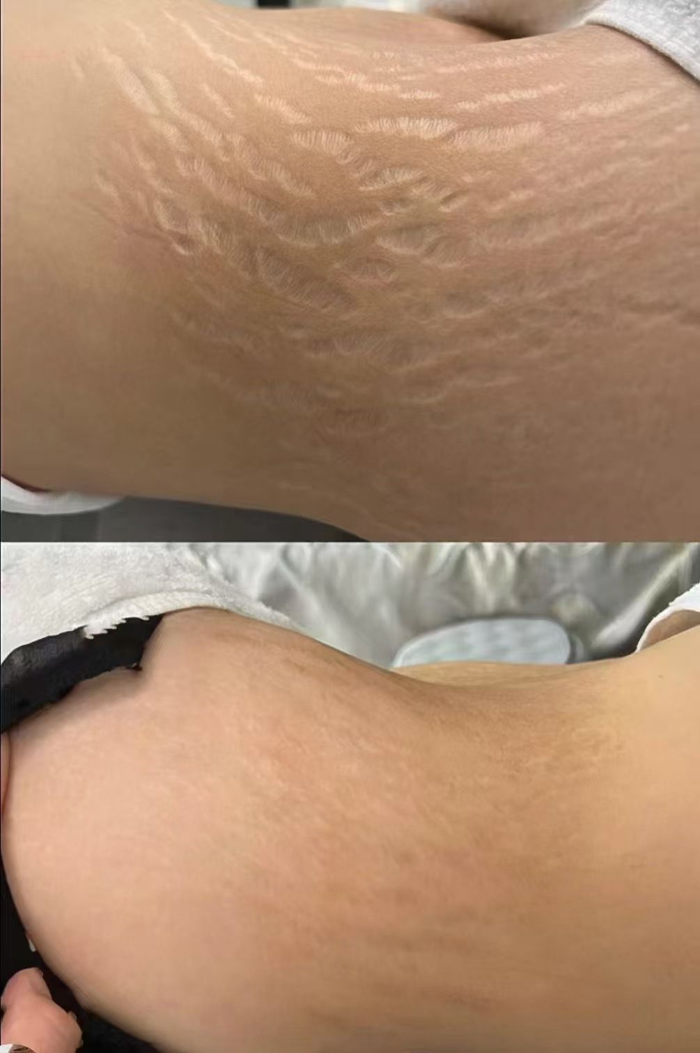 Results: Stretch marks fade in color, skin texture becomes smoother, and the treated area blends more evenly with the surrounding skin.