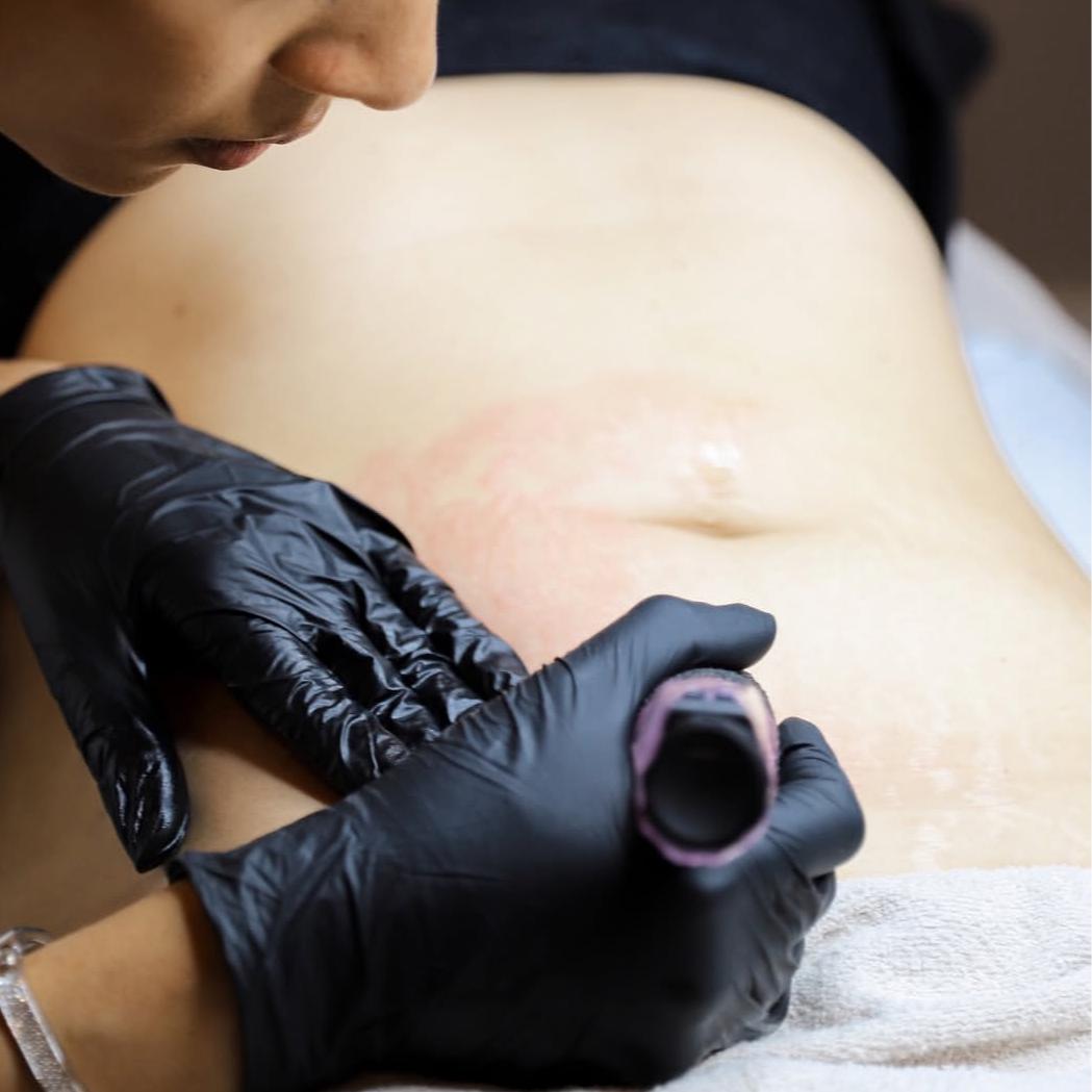 What it is: A non-invasive technique that improves the appearance of stretch marks without using pigments, camouflage ink, or tattooing. How it works: A customized serum rich in vitamins, peptides, and natural ingredients is infused into the skin with fine needles. This stimulates collagen and elastin production, encouraging the skin to repair itself naturally.